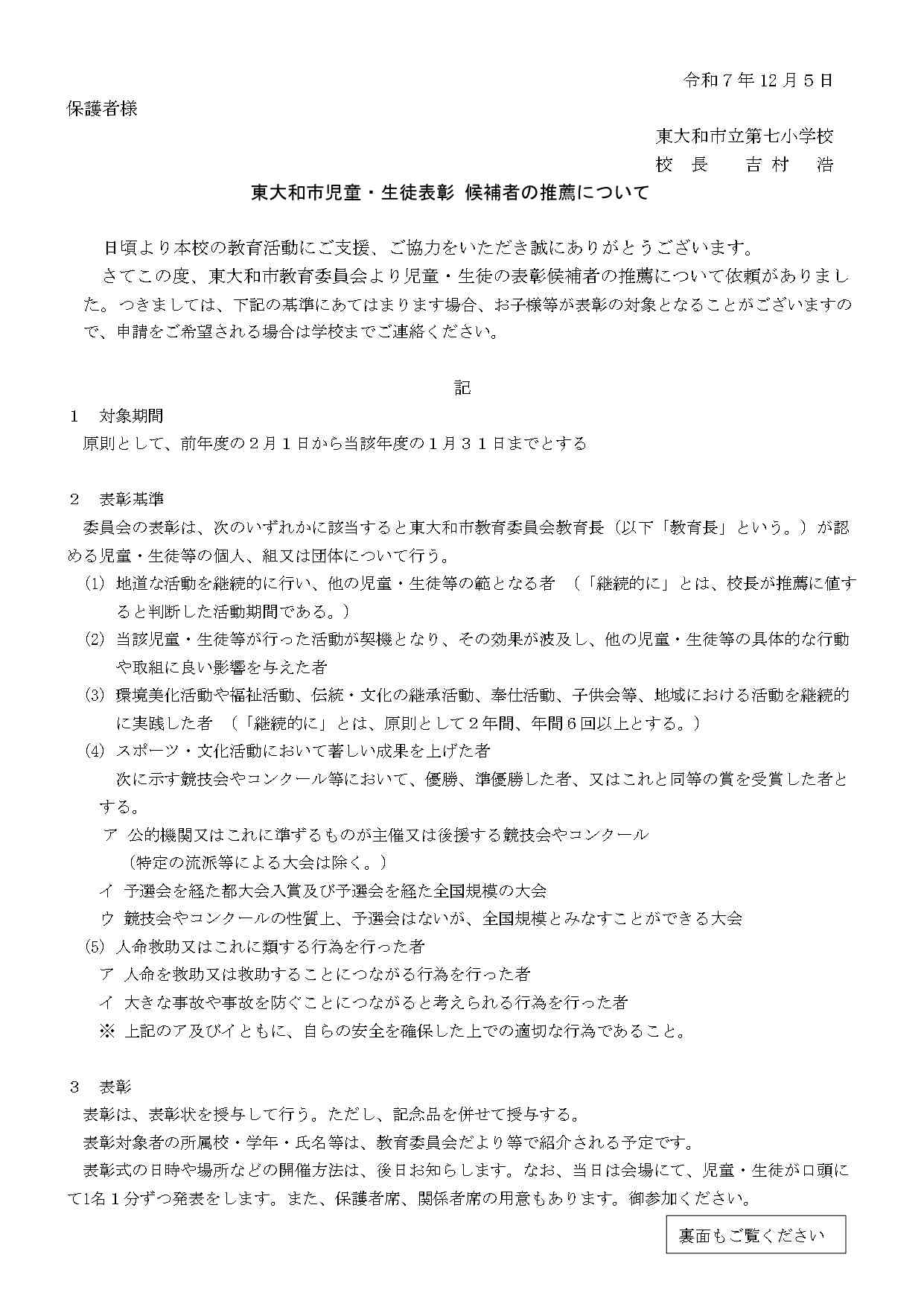 令和7年度 保護者の皆様へ 東大和市児童・生徒表彰の候補者の推薦について_page-0001.jpg